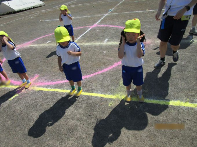 今日はグラウンドで「玉入れ」「はしれはしれ」「おゆうぎ」の練習をしました😄☀️