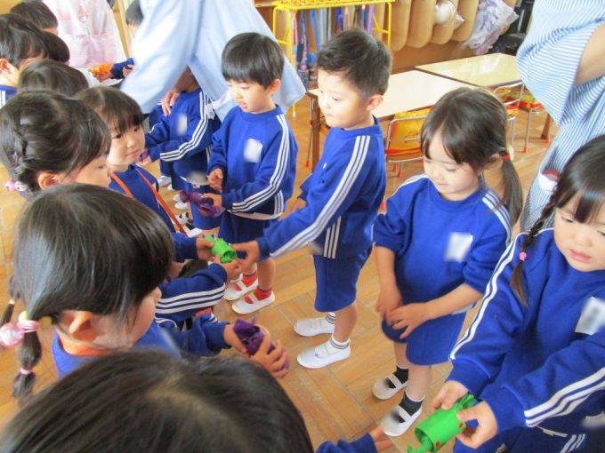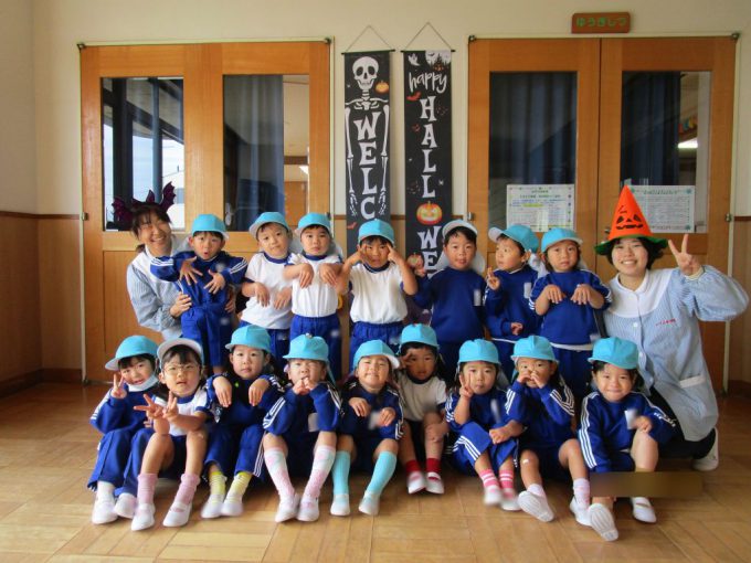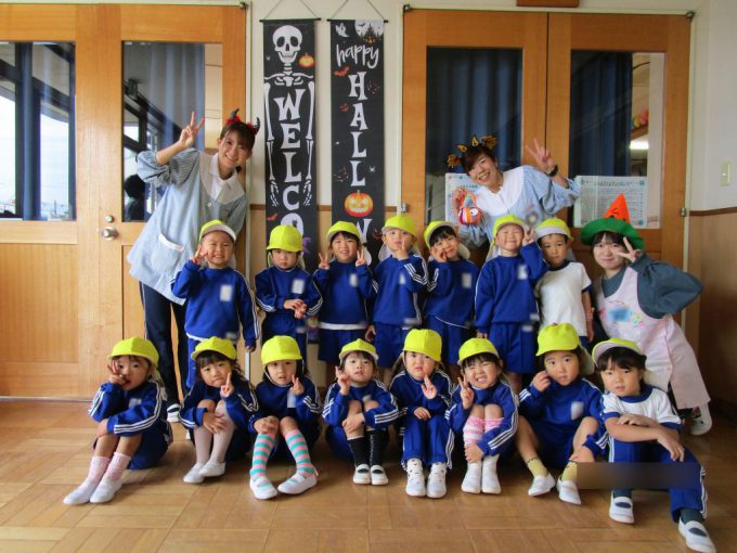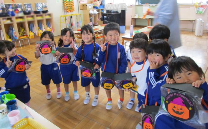 その後は「とりっく おあ とりーと!おかしをくれないといたずらしちゃうぞ👻🎶」と各クラスをまわって、手作りお菓子をもらった年少さんでした✨✨