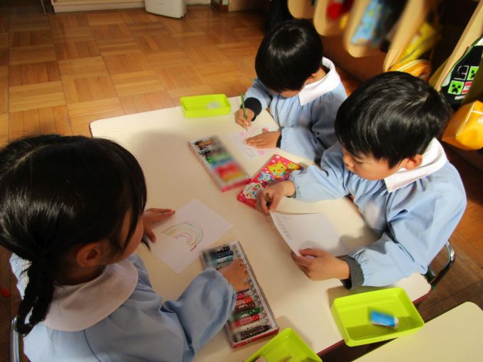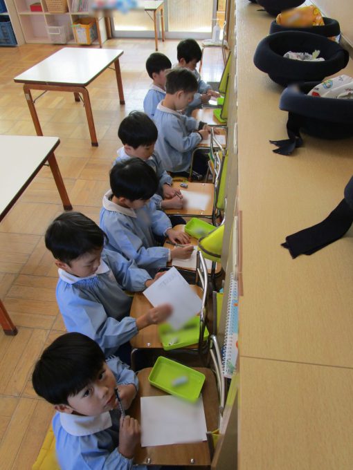 お友だちの名前を一生懸命書き、どんなお手紙が届いたら喜んでくれるかな~と考えながらみんなとても楽しそうでした☺️🎶