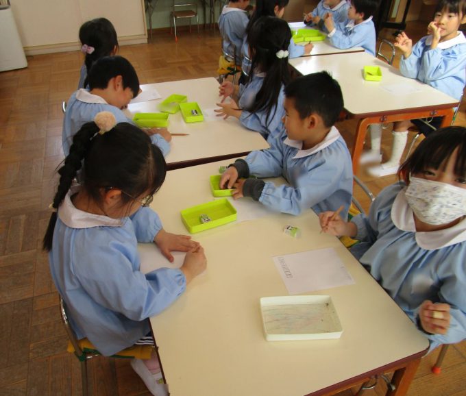 ポストに入れた手紙が郵便局に集められ、家にどうやって届くのかの紙芝居を見て、幼稚園でもやってみることにしました✏️✏️